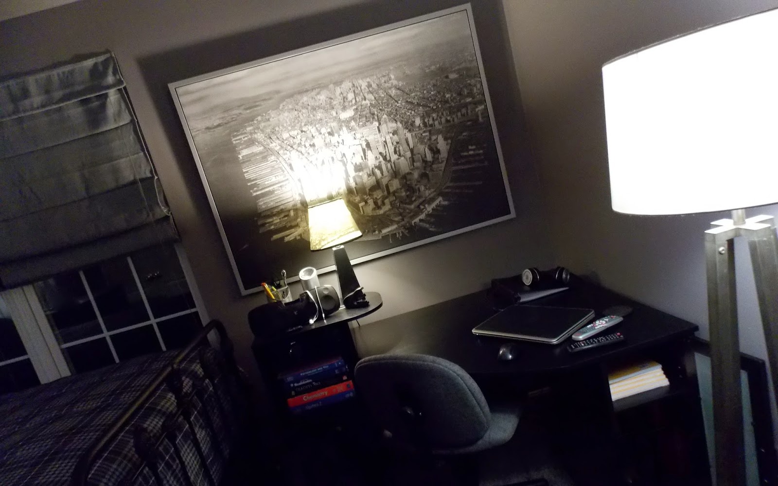 ...his big Ikea framed print of vintage NYC. That's my daddy's office chair and one of the new pieces we bought online (if you read the previous post, it's one that took us forever to put every last piece together).