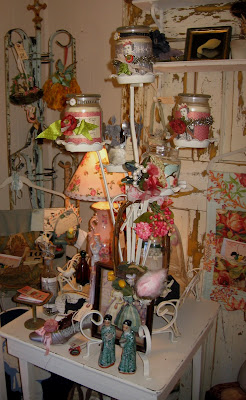 ...and many of these little vinettes here and there, some not quite sure whether or not they are real until you get really close to them. From here I went onto Richmond and had a great time with Stacy. While Stacy was in meetings on Tuesday I went into Richmond to all the wonderful places where my home girls had suggested I go. I was too busy trying not to get into too much financial trouble to take photos of that part. Again, I don't think it will be long before this eye candy siren calls to me again. I got to the really cool interior design and clothing shops (some combined-real trouble), the World of Mirth "toy" shop, and the place everyone mentioned, Ukrops. Ukrops is a grocery store which has been a historical part of Richmond and is famous for their baked goods. Stacy got her dinner from there at the salad bar but I went straight to the bakery. I only ate the custard tart that night that Patrice had suggested but brought home a half of one of their famous layer cakes and a whole layer cake for our neighbors who took care of Matt at the last minute when Paul had to take his dad to the hospital after I had arrived in Richmond. Paul's dad is still in the hospital with nothing remarkable found yet but tests are still being done...an aside...other than that it was a great little trip!!!